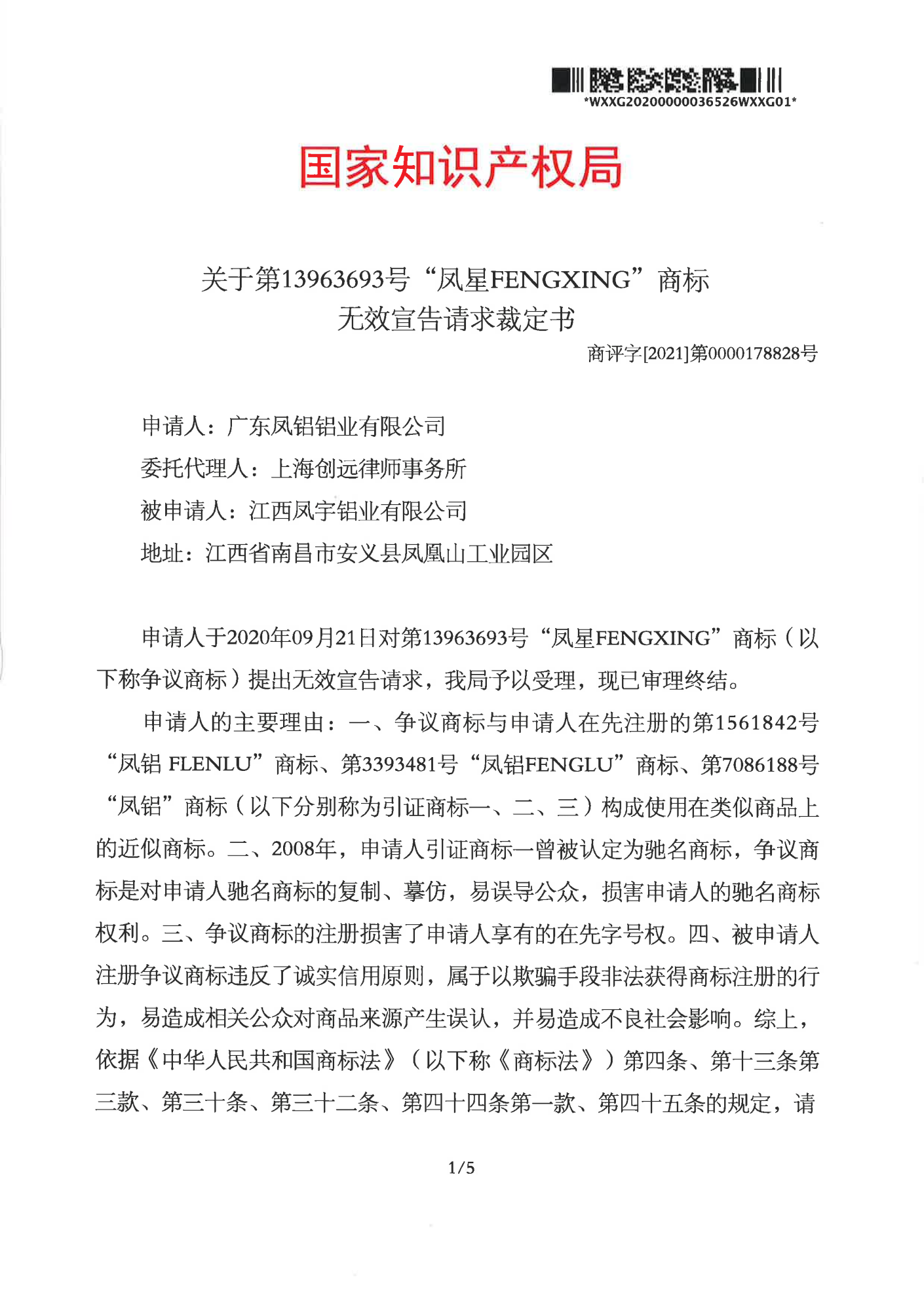 乌鲁木齐辉知队 | 国家知识产权局:“凤星”商标无效